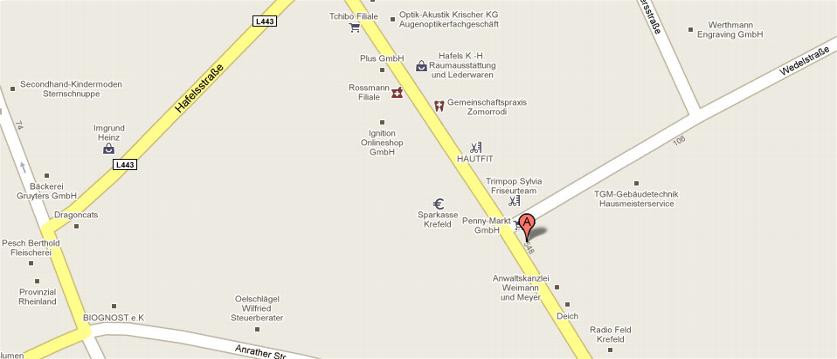 Sie finden uns in den ruhigeren, nach hintengelegenen Räumen, welche sich an der Ecke Kölner Str. Wedelstraße befinden. Der Eingang liegt rechts neben dem Geschäft "PERLINA".
